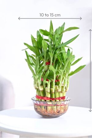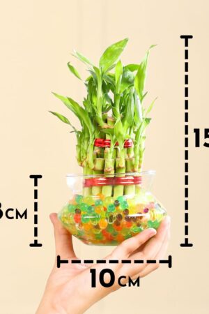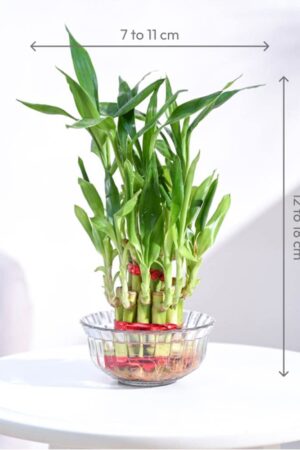 Lucky Bamboo 2 Layer Feng Shui Plant Glass Bowl | Indoor Table Top Plant for Living Room, Office Desk & Home Décor