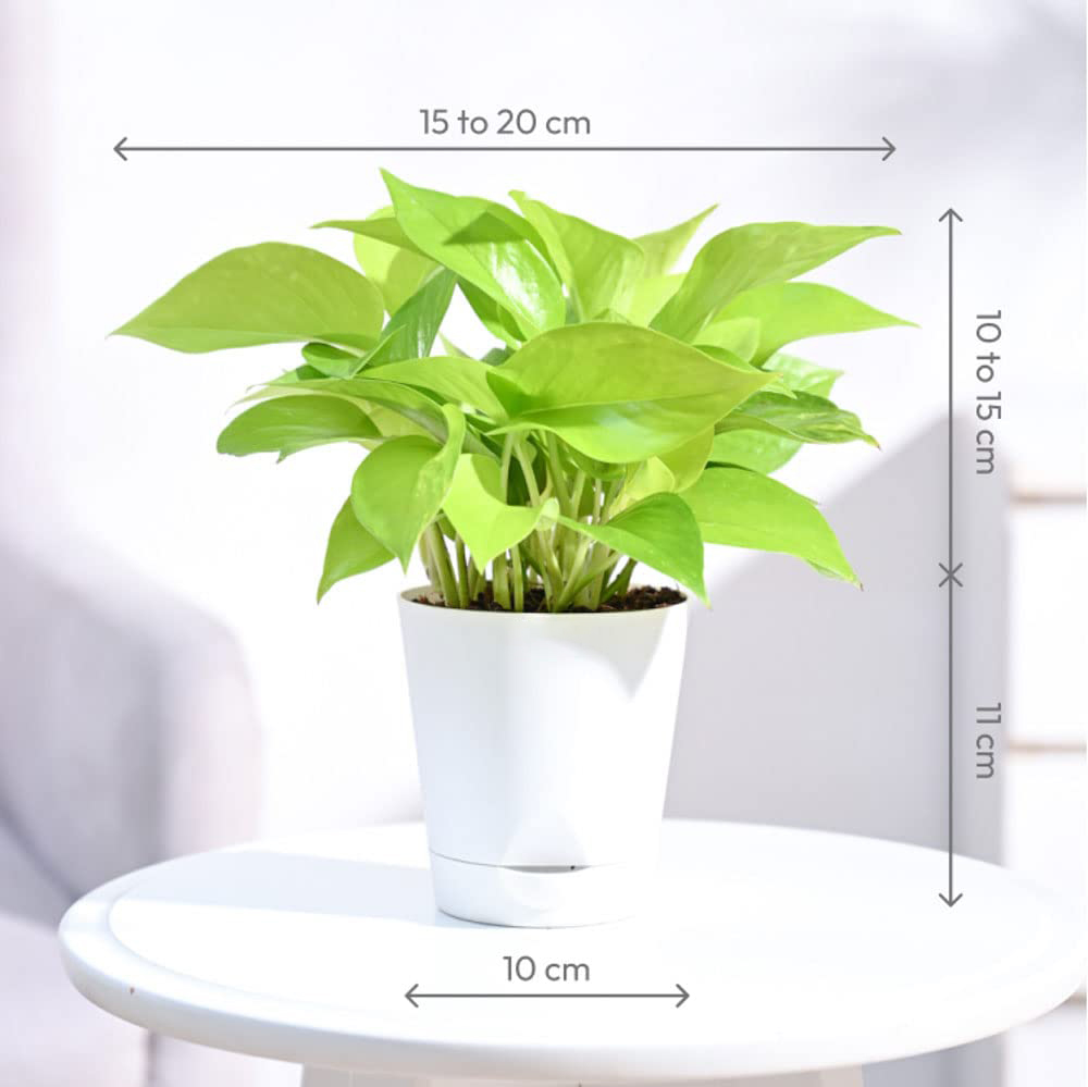 - Live Plant with Pot. Pot is self- watering where excess water gets stored in the reservoir below, the roots then absorbs water via capillary action and the plants get water as and when required, allowing you to water less frequently. Making it perfect plant for office desk.